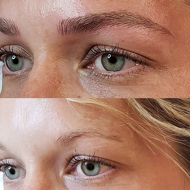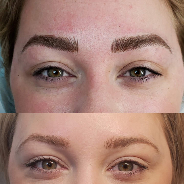 The stages of healing in microblading start in the first 3 days when the intensity of the colour will be at its peak. This happens because the colour/pigment that stays on the epidermal area makes the brows look darker, as if you had applied a pencil to them.