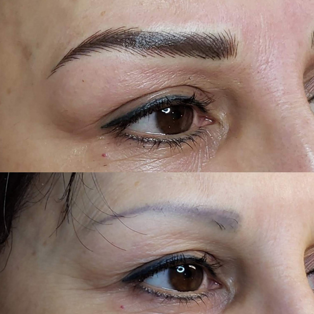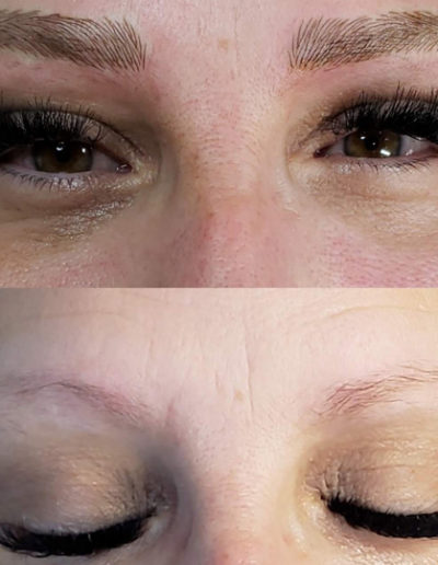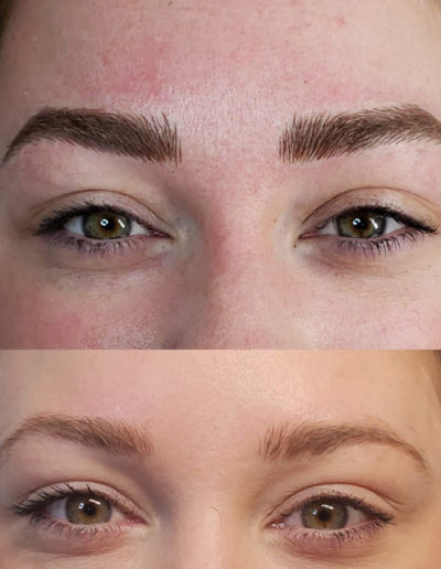 Also called “microblading fusion”, these two combined techniques use individual strokes from microblading combined with a layer of ombre shading to create a fuller look. Shading uses machine permanent makeup with a very fine needle to create soft natural shading on top of the microblading. This option is an excellent choice for those who don’t want to add pencil/powder makeup.