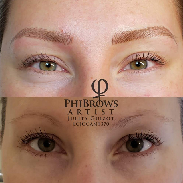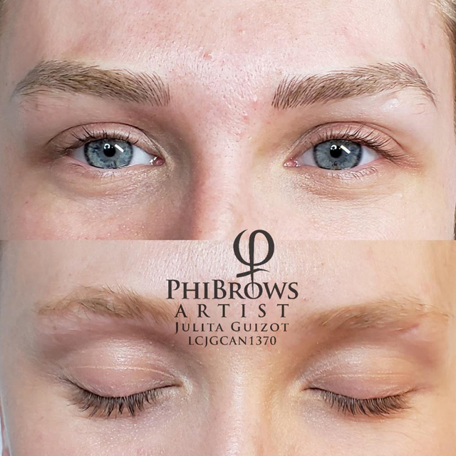 Microblading is a superficial procedure, as compared to a traditional tattoo. Therefore it will start to fade after about two years. Although there are still pigment visible, the overall shape may not look as appealing after 18 months have passed. A booster touch up is recommended to maintain the colour intensity and the crisp lines of the individual hair strokes.